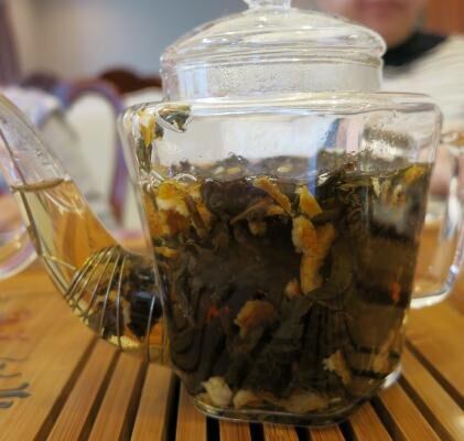 黒烏龍茶、プーアル茶と陳皮5gバランス良く取り、一度洗茶してから(茶葉をお湯で洗い流す)、味がなくなるまで何煎も飲めます。熱いのが特に香りよく、美味しくいただけます。