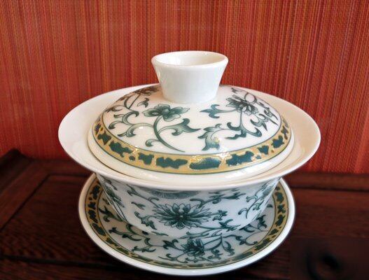 【蓋碗(グリーン花柄)】:清楚な蓋碗