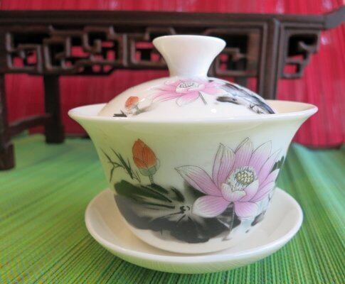 【蓋碗(蓮の花柄)】:水墨絵のような蓮の花柄蓋碗
